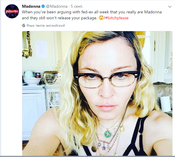 "Когда ты всю неделю споришь с FedEx о том, что ты правда Мадонна, но они все еще не отдают твою посылку", - написала певица в Twitter