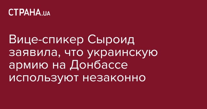 Вице-спикер Сыроид заявила, что украинскую армию на Донбассе используют незаконно