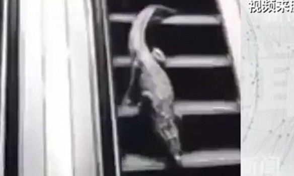 Аллигатор смог самостоятельно взобраться на эскалатор и спуститься вниз, прогулявшись между торговыми рядами.