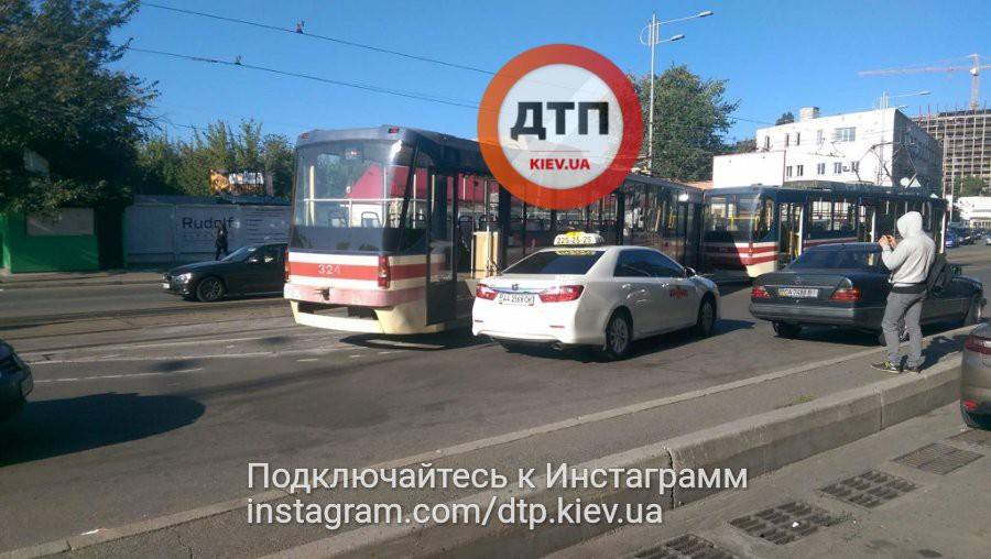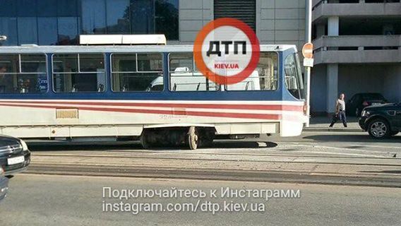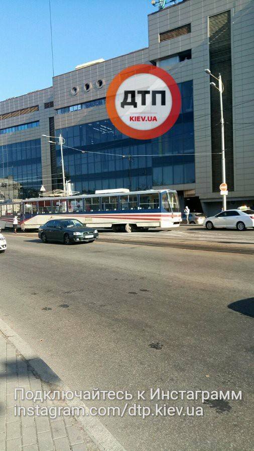 В Киеве возле центрального железнодорожного вокзала на пересечении улиц Жилянская и Старовокзальная в сторону Борщаговки с рельсов сошел трамвай. Об этом в Facebook сообщает dtp.kiev.ua.
