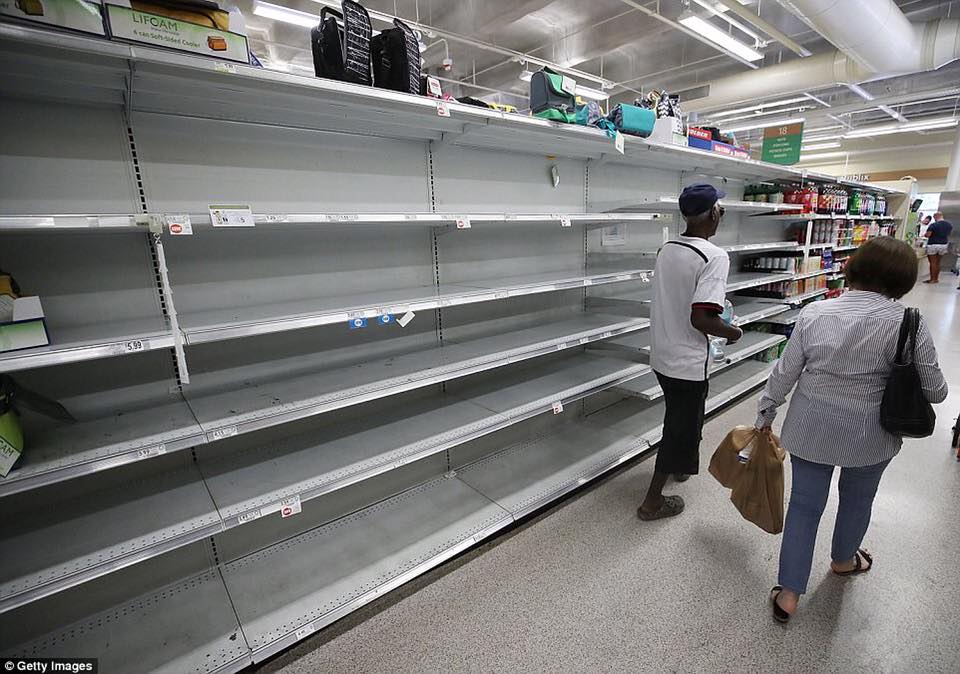 Пользователи сети Facebook публикуют фотографии невероятных пробок на дорогах и пустые полки в магазинах.