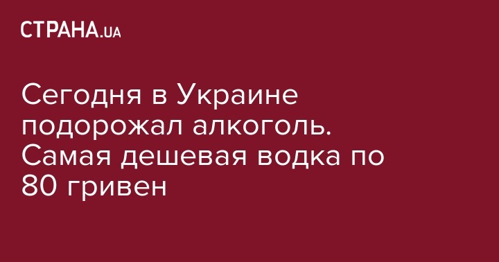 Самая дешевая бутылка водки 0,5 литра (с содержанием спирта 40%) будет стоить 79,55 грн; бутылка виски 0,5 литра (с содержанием спирта 40%) - 159,80 грн; бутылка коньяка "три звездочки" 0,5 литра (с содержанием спирта 40%) - 119,46 грн; бутылка коньяка "пять звезд" 0,5 литра (с содержанием спирта 40%) - 138,52 грн; бутылка вина виноградного натурального 0,75 литра - 39,64 грн, а бутылка вина виноградные натуральные с добавлением спирта 0,75 литра - 48,21 грн.