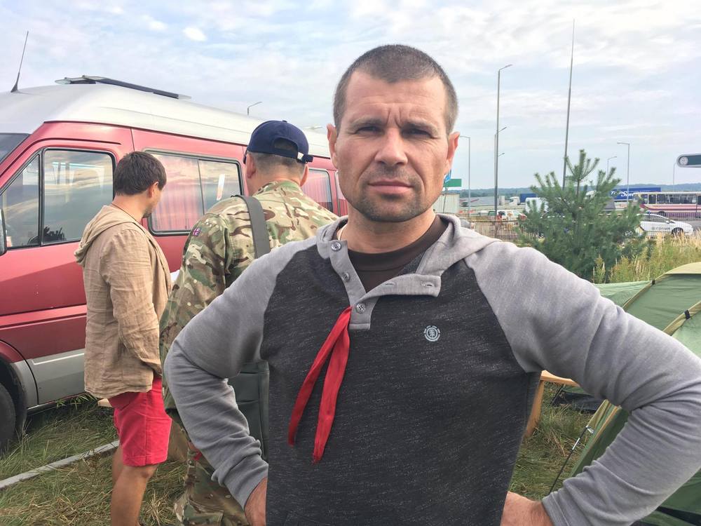 В лагере выделяются ветераны батальона "Донбасс" Семена Семенченко. Они стоят в полной экипировке.