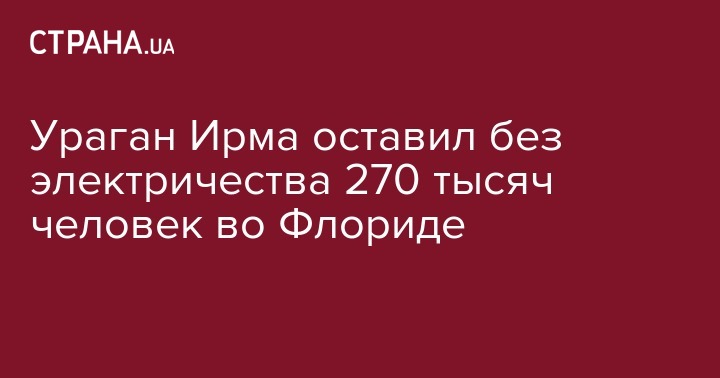 Почти 270 тысяч человек в американском штате Флорида остались без электричества при приближении урагана Ирма, сообщает РИА "Новости" со ссылкой на компанию-поставщика Florida Power & Light.