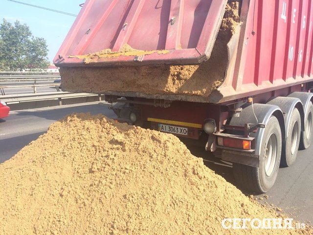 В Киеве движение на Южном мосту заблокировала груда просыпавшегося комбикорма