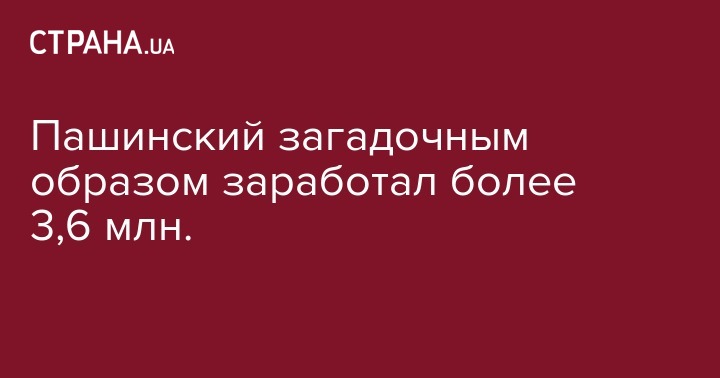 Члены семьи Пашинского в 2015 году заработали 552 тысячи гривен. Большая часть суммы, более 549 тысяч гривен - дивиденды и проценты, еще 2,4 тысячи - страховые выплаты.
