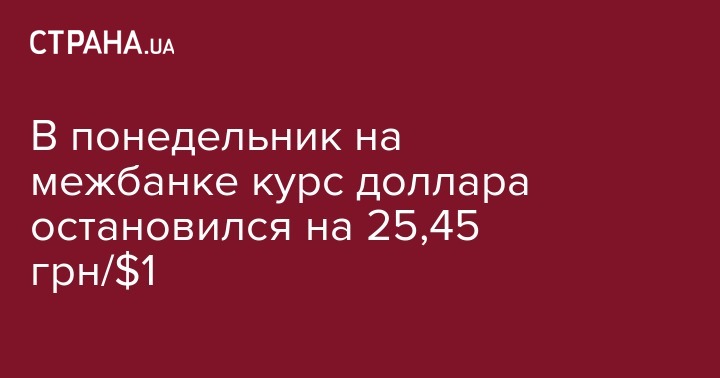 В понедельник на межбанке курс доллара остановился на 25,45 грн/$1
