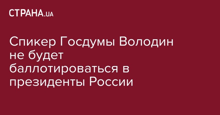 Спикер Госдумы Вячеслав Володин сообщил, что не будет выдвигаться кандидатом на предстоящих президентских выборах. Об этом сообщает "Интерфакс".