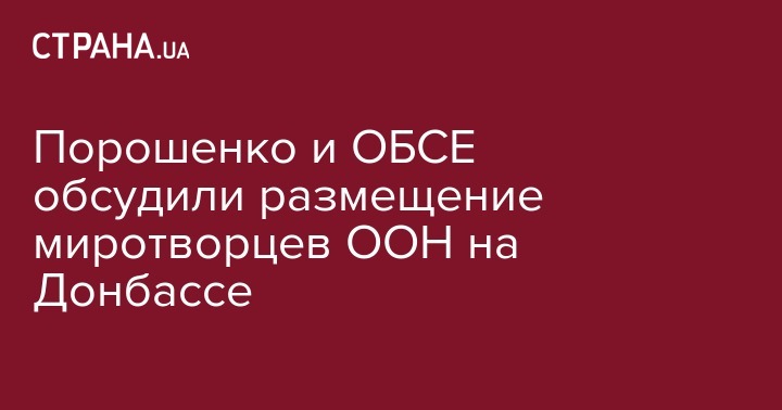 "Стороны скоординировали подходы по размещению миротворческой миссии ООН на всей территории оккупированного Донбасса. Петр Порошенко отметил важность налаживания интенсивного диалога между ОБСЕ и ООН в данном вопросе", - сказано в сообщении.