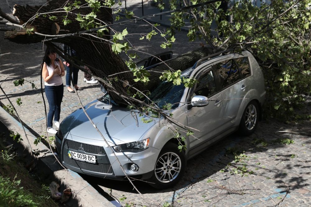 Джип женщины-нардепа во Львове раздавило упавшее дерево. Фото
