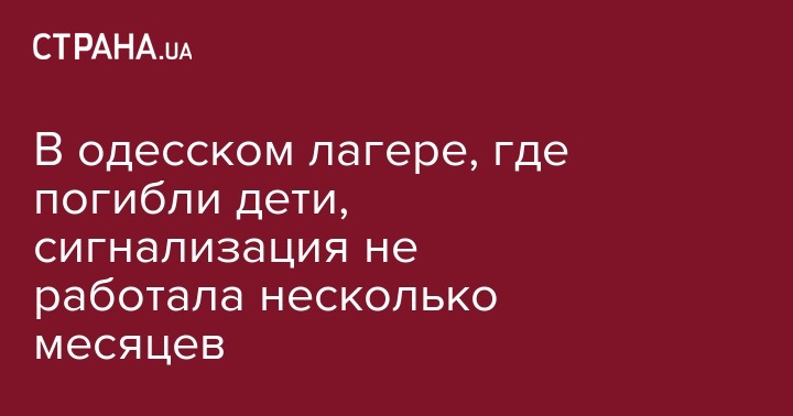 Накануне пожара в детском лагере "Виктория" в Одесской области, где сгорели трое детей, звуко-световая противопожарная сигнализация была выключена. Она не работала уже несколько месяцев. Об этом сообщает "Интерфакс-Украина" со ссылкой на управление ГосЧС в Одесской области.