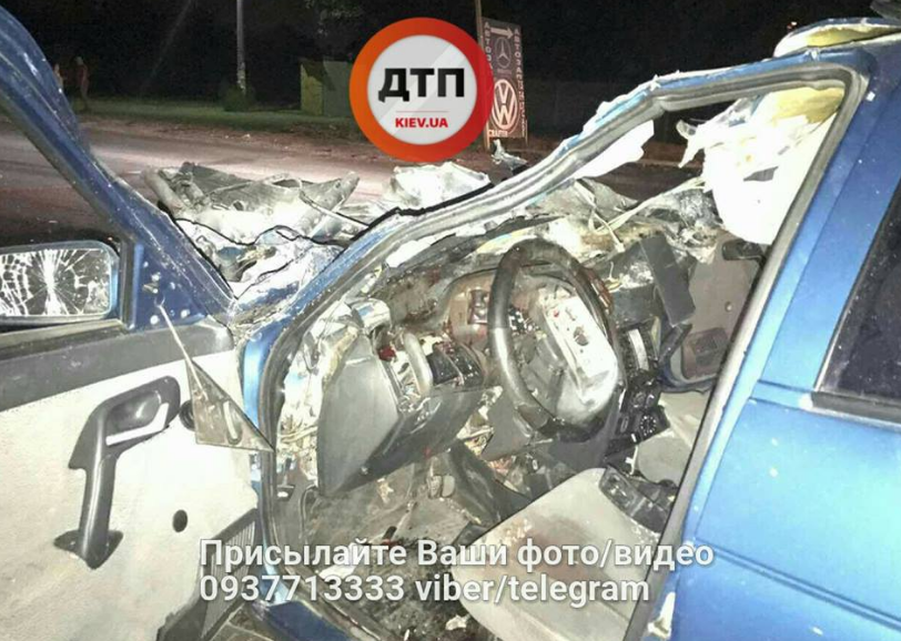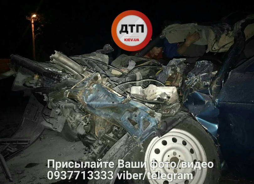 В ночь на 17 сентября в районе аэропорта "Жуляны" в Киеве легковушка на полной скорости врезалась в машину дорожной службы и разбилась "всмятку". Об этом в Facebook сообщает dtp.kiev.ua.