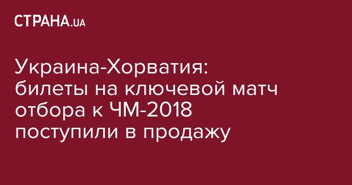 С сегодняшнего дня поступили в продажу билеты на ключевой матч квалификации Чемпионата мира ФИФА 2018 между национальными сборными командами по футболу Украины и Хорватия. On-line продажа билетов на сайте e-sport.in.ua