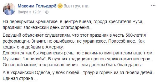 Максим Гольдарб, экс-работник прокуратуры и Минобороны: "На перекрытом Крещатике, в центре Киева, города-крестителя Руси, праздник: заокеанский день благодарения...