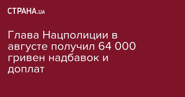 Глава Нацполиции в августе получил 64 000 гривен надбавок и доплат