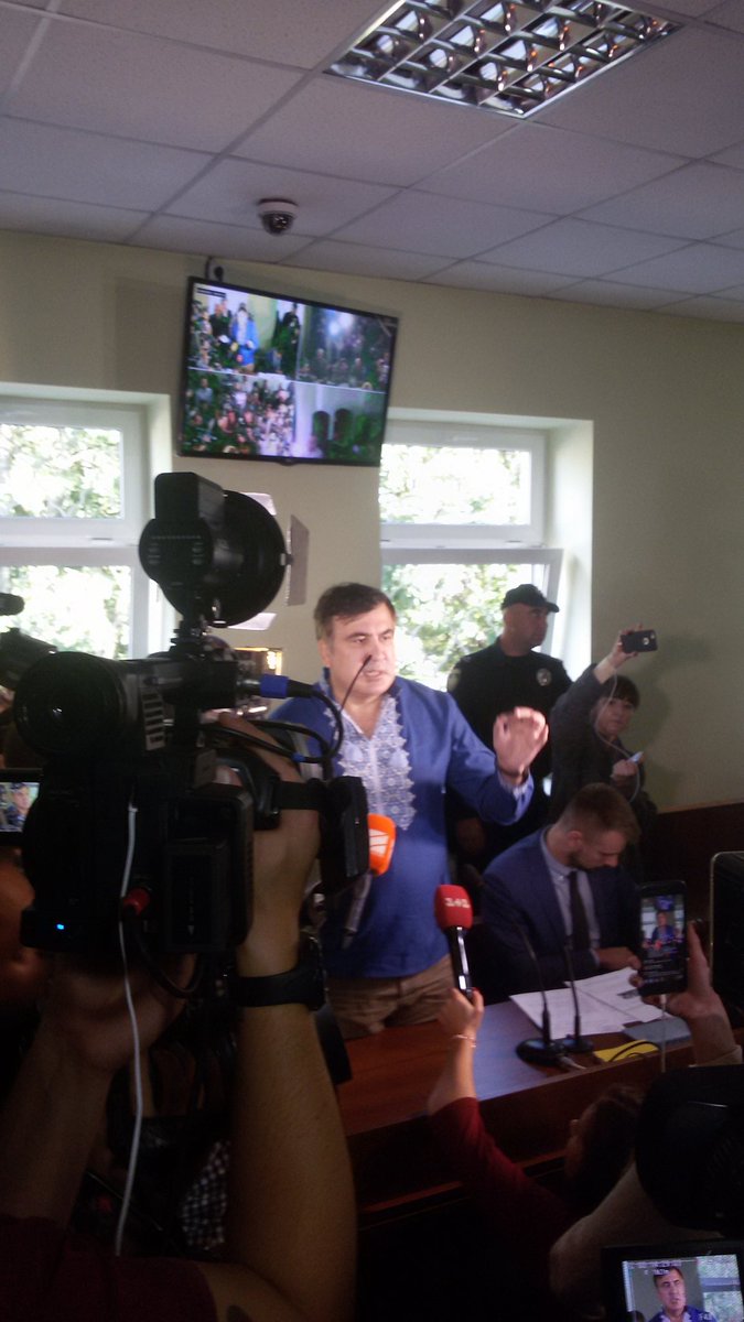 В Мостицкий райсуд Львовской области на рассмотрение дела по прорыву государственной границы на прошлой неделе приехал Михаил Саакашвили. Об этом сообщает в Twitter пользователь Олеся Бида.