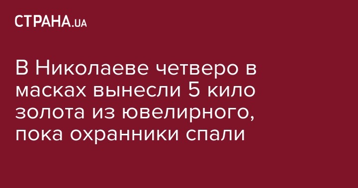 Четверо людей в масках похитили из ювелирного магазина в помещении супермаркета на пр. Богоявленском в Николаеве 5 кг золотых изделий на сумму более 3 миллиона гривен. Об этом сообщает пресс-служба полиции Николаевской области.