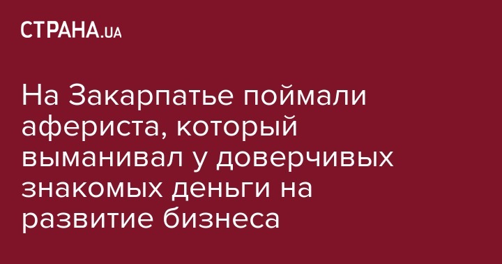 На Закарпатье поймали афериста, который выманивал у доверчивых знакомых деньги на развитие бизнеса