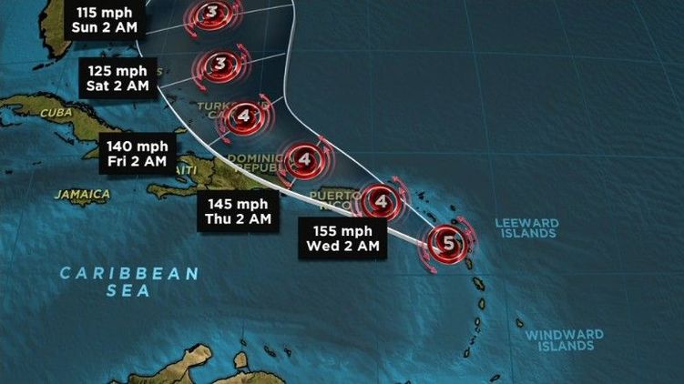 Буря будет продолжать двигаться в направлении Пуэрто-Рико и Виргинских островов в качестве сильной категории 4 или категории 5 и, как ожидается, не будет уменьшаться.