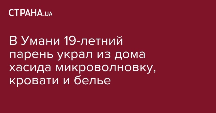 В Умани 19-летний парень украл из дома хасида микроволновку, кровати и белье