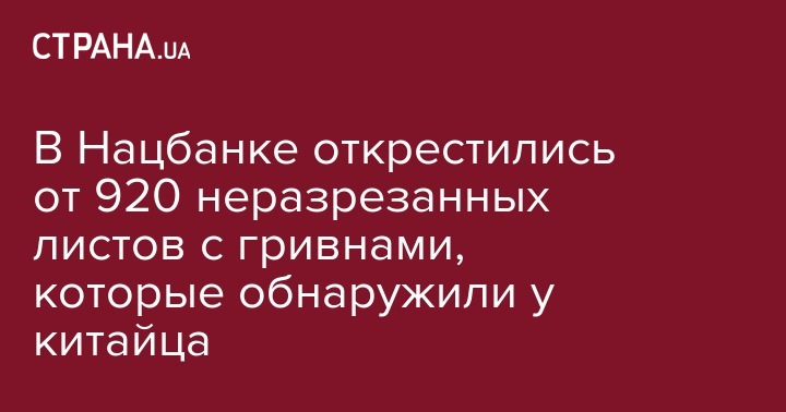 В Национальном банке Украины прокомментировали информацию о задержании в аэропорту Новосибирска 39-летнего гражданина Китая (направлявшегося на рейс в Шанхай) с 920 листами неразрезанных гривневых купюр номиналом 5, 10 и 20 грн на общую сумму 819 тыс. грн. Пограничники сообщили, что провели экспертизу и подтвердили подлинность наших денег. Вероятно, ею занимались местные эксперты, поскольку, в Нацбанке Украине уверяют, что никаких экспертиз не проводили.