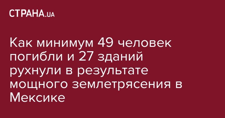 В Мексике произошло мощное землетрясение магнитудой в 7 баллов, в результате которого как минимум 49 человек погибли. Об этом сообщает Русская служба ВВС.