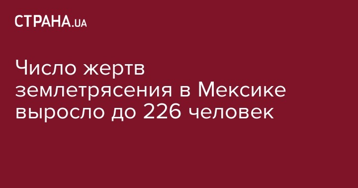Число погибших в результате землетрясения в Мексике увеличилось до 226. Об этом сообщил глава национальной аварийно-спасательной службы Мексики Луис Фелипе Пуэнте в Twitter.