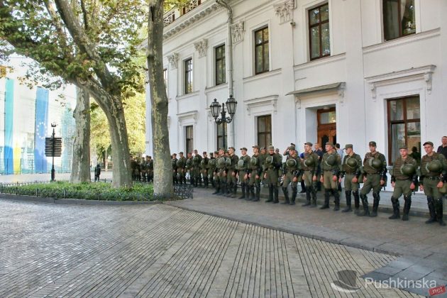 В Одессе сегодня с утра, 20 сентября, выставлена усиленная охрана возле городского совета из-за угрозы взрыва. Об этом сообщает пресс-служба областной полиции