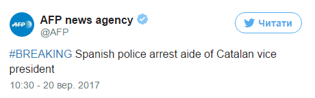Агентство AFP сообщило, что испанская полиция задержала помощника каталонского вице-президента Ориольда Ункераса.