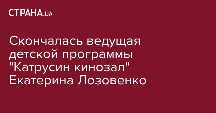 Сегодня ночью, 21 сентября, скончалась популярная телеведущая Тетя Катя из детской программы "Катрусин Кинозал", Екатерина Лозовенко. Об этом написала журналистка Ольга Байвидович на своей Facebook-странице.