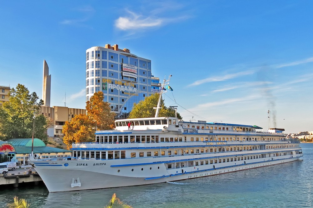Круизный теплоход типа река-море "Зирка Днепра" в настоящее время движется в направлении Крыма.