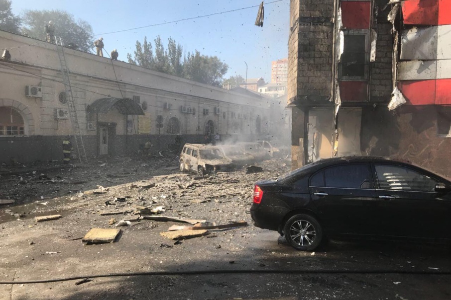 В центре Ростова-на-Дону полыхает новая десятиэтажная гостиница