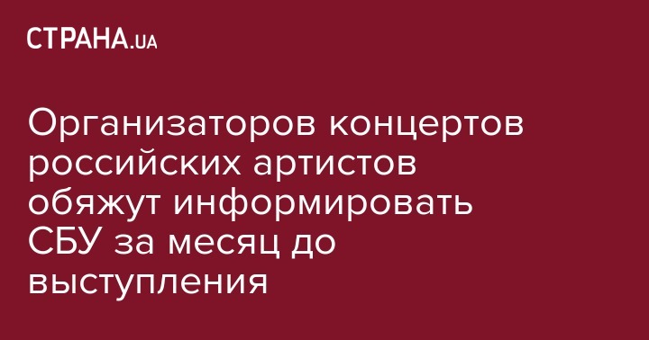Согласно законопроекту, в случае, если участником запланированного гастрольного мероприятия является гражданин страны-агрессора, организатор не позднее чем за 30 дней до дня проведения мероприятия подает в СБУ запрос на получение информации о наличии или отсутствии законных оснований для недопущения гражданина страны-агрессора к участию в указанных гастролях.