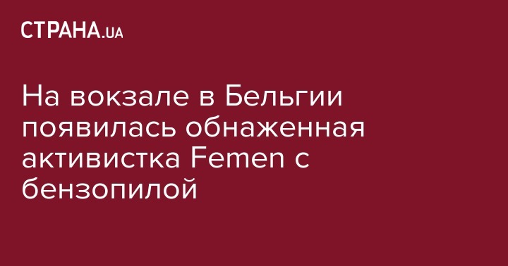 На вокзале в Бельгии появилась обнаженная активистка Femen с бензопилой