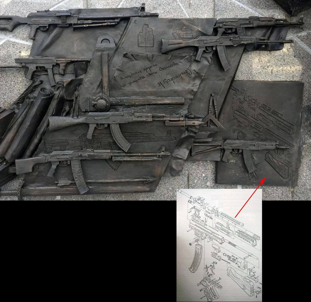 Говоря о получившейся ошибке, он пояснил: "Военно-историческое общество является заказчиком памятника, и мы не регламентируем каждую деталь". "У нас пожелание к оружию было одно - к той модели автомата, которую держит в руках Михаил Калашников. Это должен был быть один из первых образцов. Все остальное, что касается барельефа и прочего - это полет творческой фантазии скульптора, художника. К сожалению вкралась эта ошибка", - отметил Кононов.
