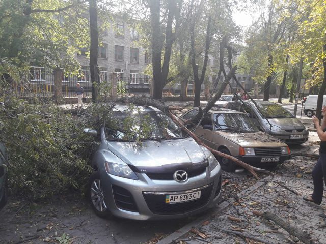 А в Запорожье по улице Мира старое дерево упало на авто припаркованное во дворе, обошлось без жертв. Об этом сообщает издание Антикор.