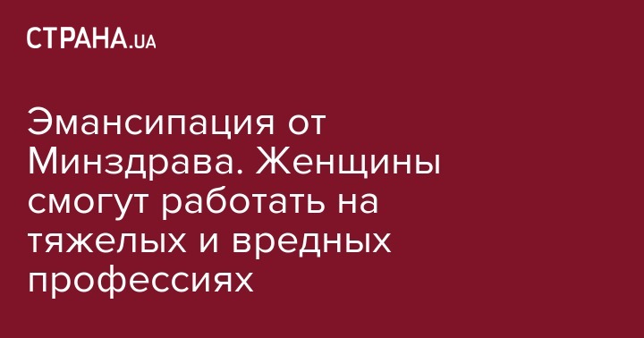 Как сообщала "Страна", в Минздраве готовятся приравнять женщин к мужчинам и разрешить им тяжелые работы.