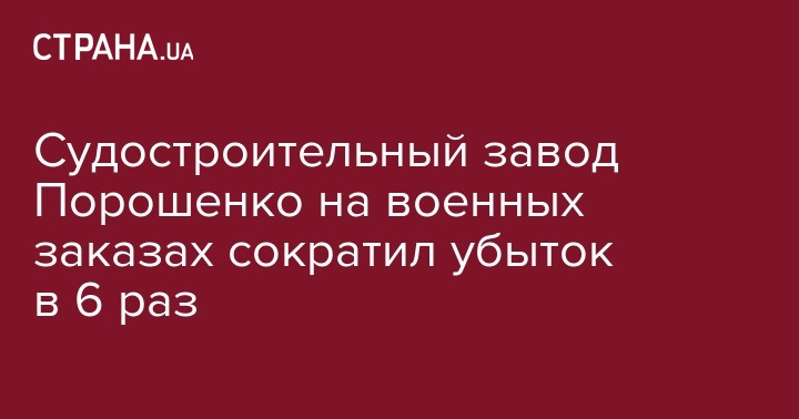 Судостроительный завод Порошенко на военных заказах сократил убыток в 6 раз