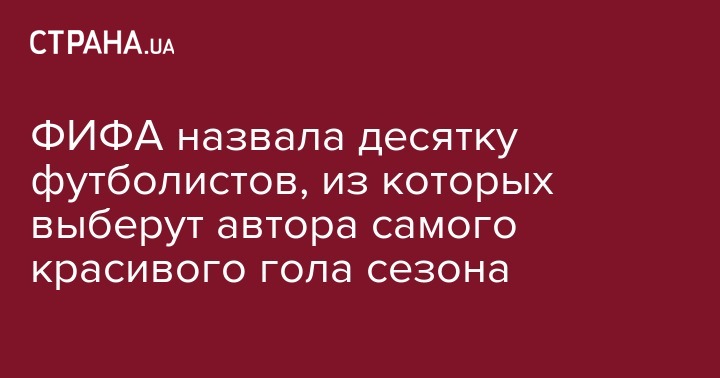 Международная федерация футбола (ФИФА) назвала 10 претендентов на приз имени Ференца Пушкаша. Его получает автор лучшего гола сезона.