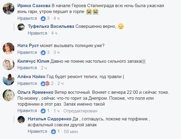 То ли о гари, то ли смоге сообщают и подписчики паблика "Смог на Оболони". Большинство пользователей соглашаются, что воняет как при пожаре торфяников или травы.