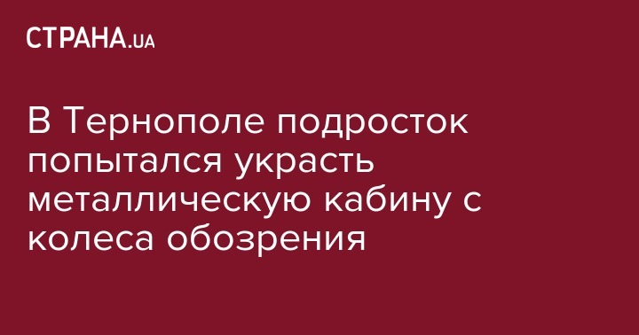 В Тернополе 13-летний подросток был задержан при попытке украсть 100-килограммовую металлическую кабину с местного колеса обозрения.