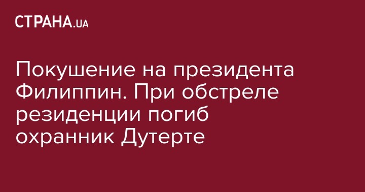 Покушение на президента Филиппин. При обстреле резиденции погиб охранник Дутерте