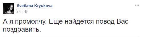 Светлана Крюкова, журналист: "А я промолчу. Еще найдется повод Вас поздравить".