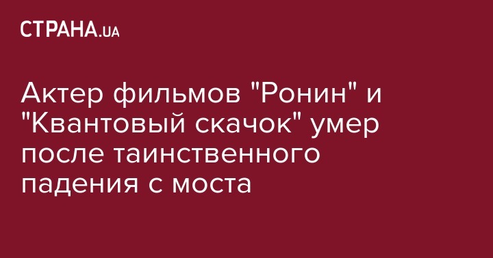 Актер фильмов "Ронин" и "Квантовый скачок" умер после таинственного падения с моста