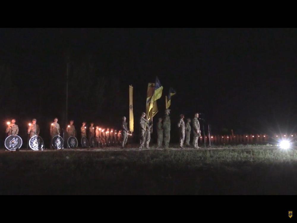 Полк "Азов" провел под Мариуполем ночной ритуал памяти своих погибших побратимов. Об этом идет речь в записи батальона на канале Youtube.