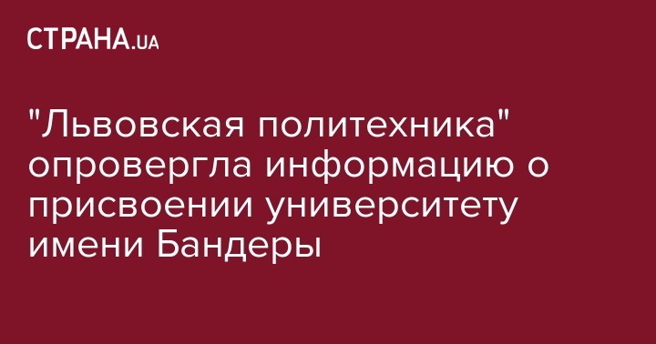 "Кафедра истории, музееведения и культурного наследия Национального университета "Львовская политехника" опровергает информационные сообщения в СМИ относительно инициирования ею предложения присвоить имя Степана Бандеры Львовской политехнике", - говорится в сообщении.