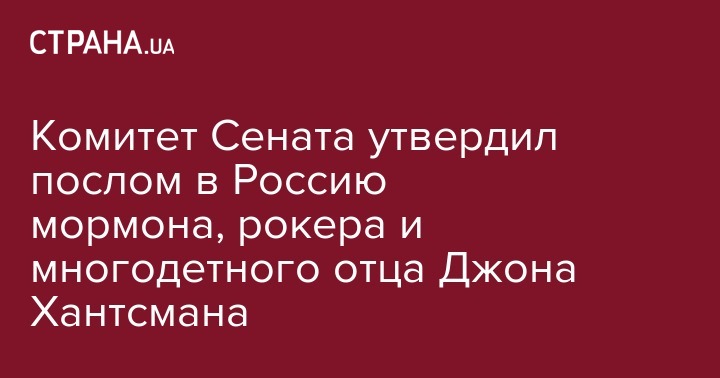 Комитет Сената утвердил послом в Россию мормона, рокера и многодетного отца Джона Хантсмана