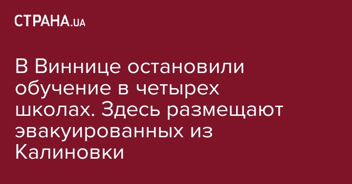 В среду, 27 сентября, в связи с эвакуацией населения Калиновки и близлежащих населенных пунктов, обучение в четырех школах Винницы приостановлено. Там разместили вывезенных из опасной зоны людей. Об этом сообщает горсовет Винницы.