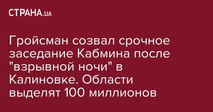 Гройсман созвал срочное заседание Кабмина после "взрывной ночи" в Калиновке. Области выделят 100 миллионов