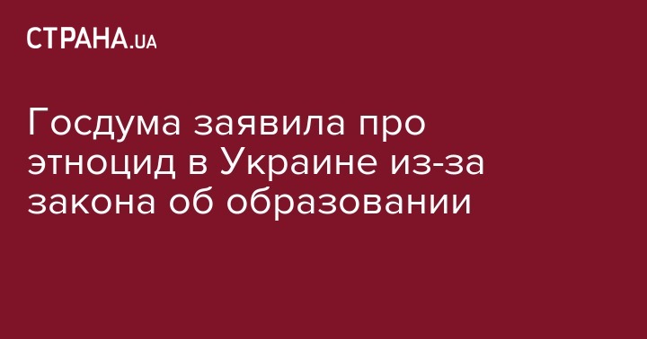 "Подписанный президентом Украины Закон "Об образовании" станет актом этноцида (политикой истребления национальной идентичности этноса, - Прим.ред.) русского народа на Украине", - говорится в заявлении.
